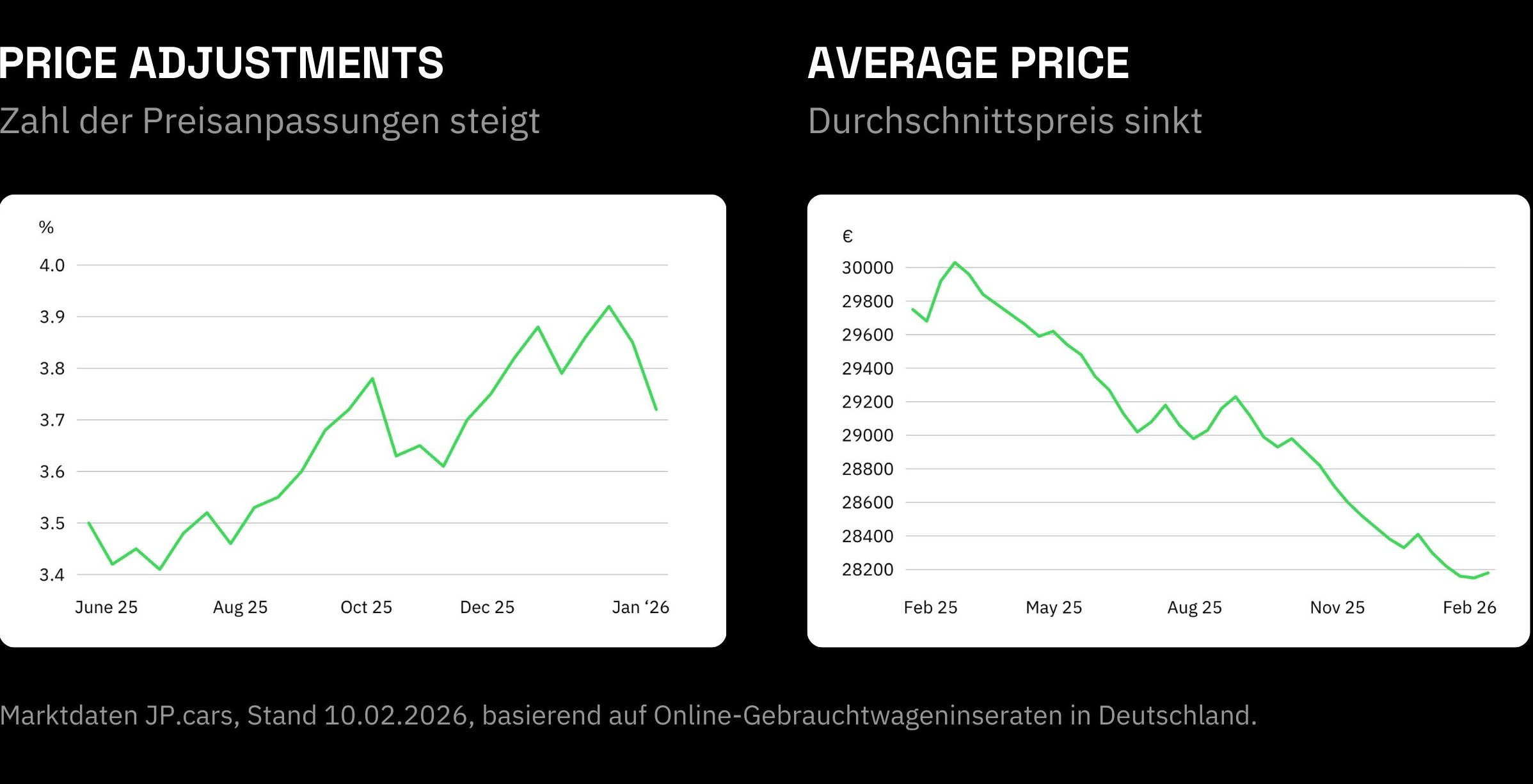 Over the past months, pricing behaviour in the German used car market has become increasingly reactive. Average prices are declining, while the frequency and size of price adjustments continue to rise. Dealers are changing prices more often and earlier, yet many are struggling to protect margins.